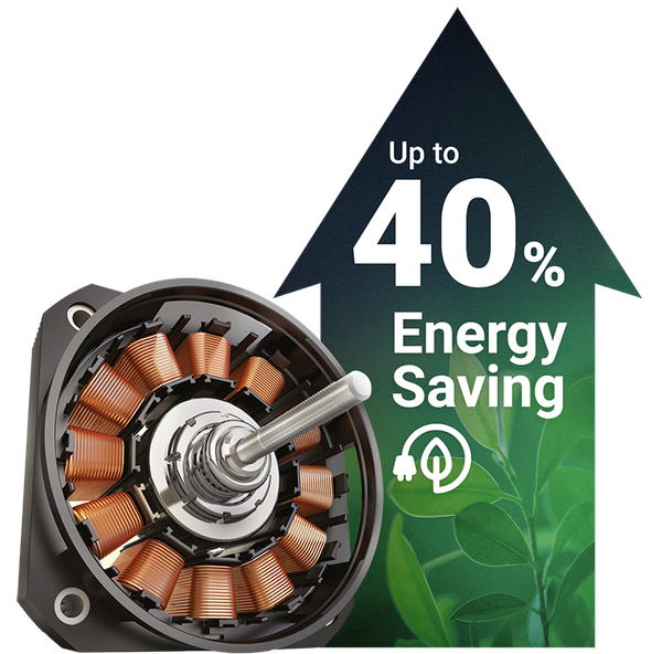 🔷 Động cơ Inverter Truyền động Trực tiếp: Vận hành êm ái, ổn định và tiết kiệm đến ~40% điện năng (Đạt cấp Hiệu suất năng lượng cấp 1).