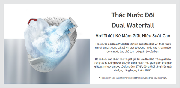 | Hệ thống giặt | Dual Waterfall (Thác nước Đôi) |