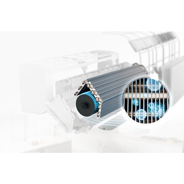 🔷 Kết hợp 3 công nghệ lọc không khí khác nhau để tăng cường hiệu quả chống lại các chất gây ô nhiễm bao gồm virus và vi khuẩn và thậm chí cả mùi khó chịu. Bộ lọc trước (pre-filter), bộ lọc không khí (air-purifying filter) và chức năng làm sạch dàn trao đổi nhiệt (heat exchanger cleaner) hoạt động đồng bộ với hiệu quả lên đến 99,9% đối với các loại virus bao gồm SARS-CoV-2 *, 99.0% đối với vi khuẩn **.