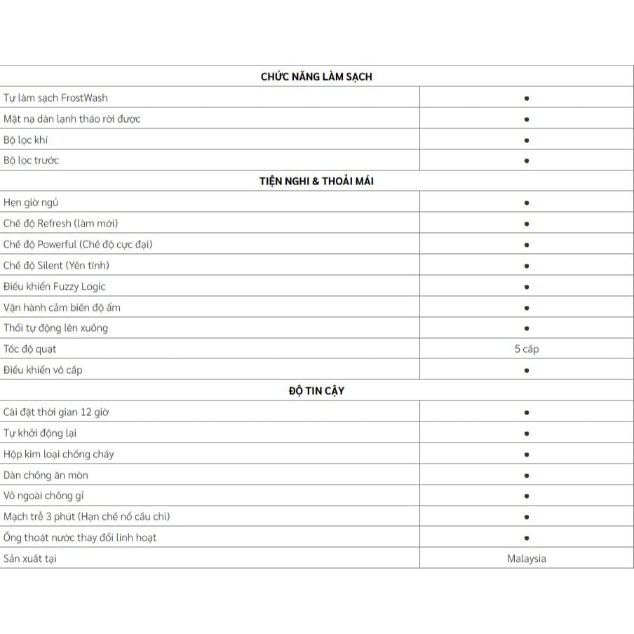 🔷 Chức năng Tự làm sạch (Self Clean): Ngoài FrostWash, máy còn có chức năng sấy khô bên trong dàn lạnh để ngăn ngừa nấm mốc và mùi hôi.
