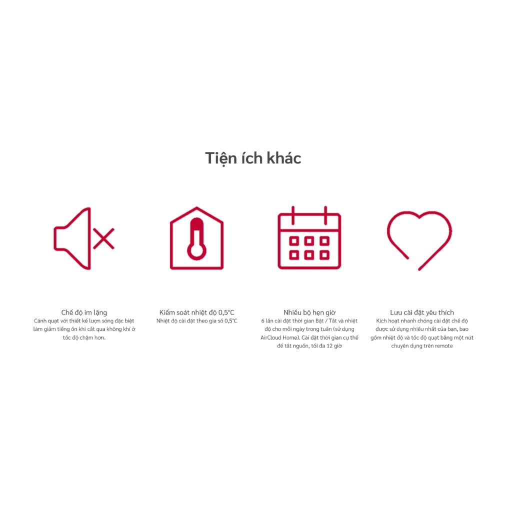 🔷 GoodSleep Timer - Cải thiện chất lượng giấc ngủ - Cài đặt hẹn giờ ngủ, sau đó chế độ GoodSleep sẽ dần dần điều chỉnh nhiệt độ +2oC sau khi cài đặt và tắt thiết bị sau những giờ được chỉ định, cung cấp nhiệt độ thoải mái trong khi bạn ngủ và giảm tiếng ồn khó chịu.