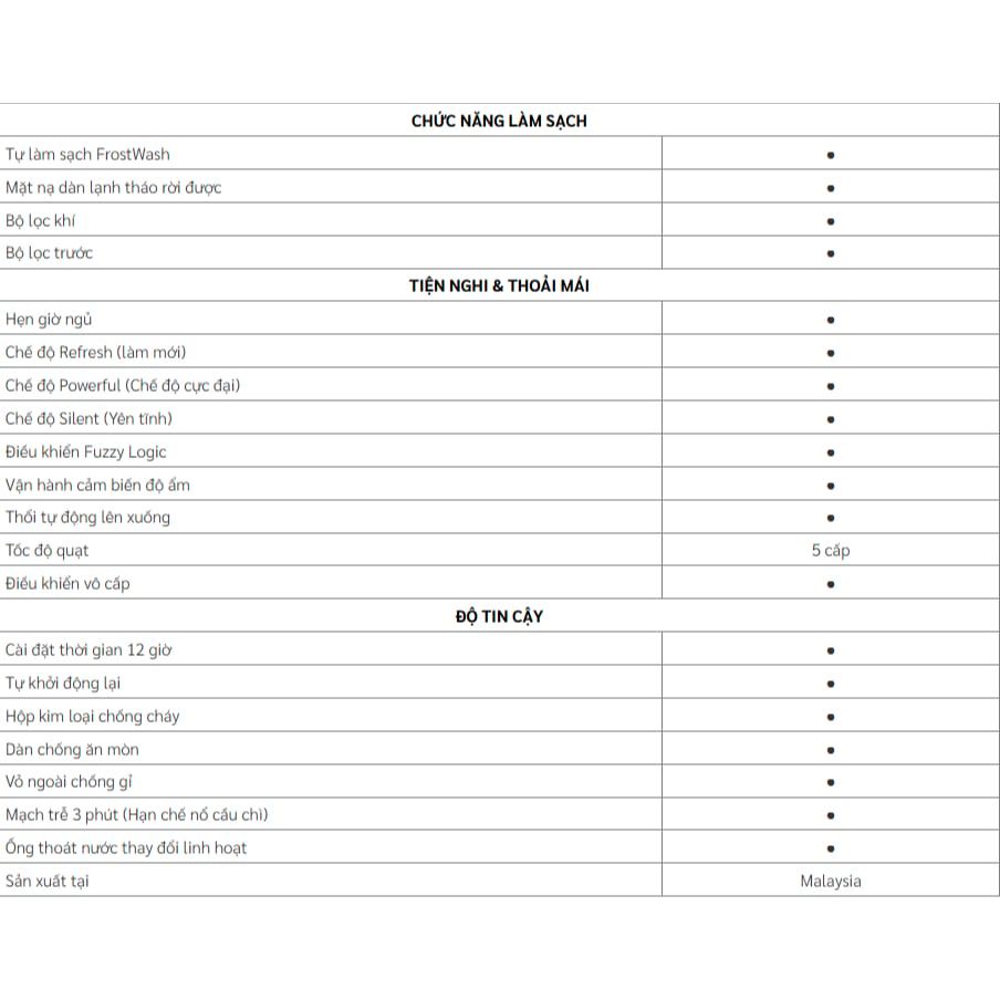 🔷 Tự làm sạch: Ngoài FrostWash, máy còn có chức năng sấy khô bên trong dàn lạnh để ngăn ngừa nấm mốc và mùi hôi.