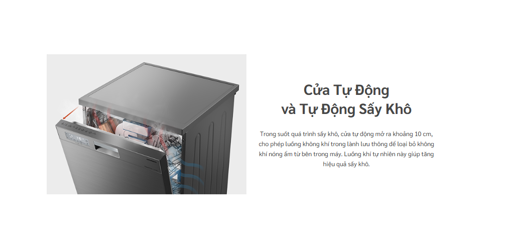 🔷 Cơ chế: Sau khi kết thúc chu trình rửa, cửa máy sẽ tự động mở hé ra.