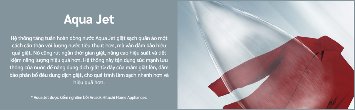 🔷 Tính năng: Các tia nước áp lực cao (Aqua Jet) được phun trực tiếp vào quần áo trong quá trình giặt.