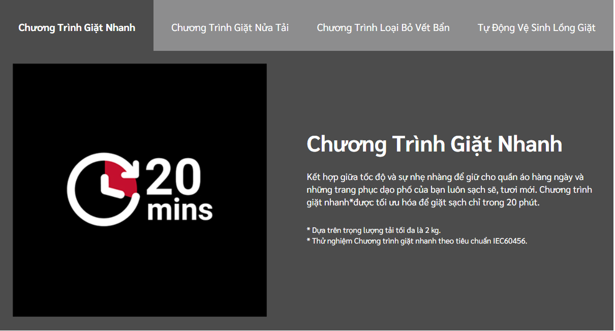 | Chương Trình 2 | Giặt Nhanh |