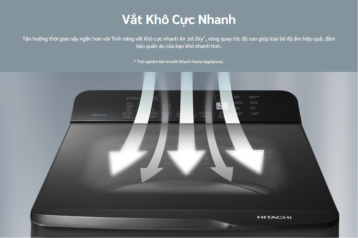 🔷 Cơ chế: Luồng nước mạnh mẽ được phun ra từ hai vị trí trên cao của lồng giặt, giúp hòa tan bột giặt nhanh chóng và thẩm thấu sâu vào từng sợi vải.