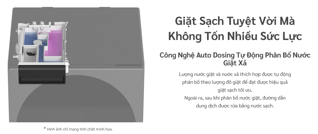 🔷 Vận hành: Điều khiển tốc độ quay của động cơ một cách thông minh tùy theo lượng đồ giặt.