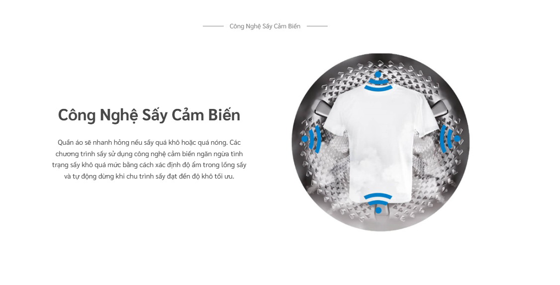 🔷 Cảm biến độ ẩm: Tự động dừng chu trình khi quần áo đạt độ khô lý tưởng, tránh sấy quá nhiệt làm khô cứng sợi vải.