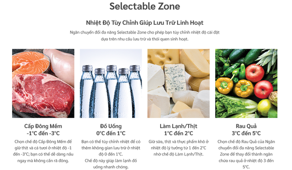 1. Ngăn Tùy Chỉnh Chế Độ Selectable Zone – 4 Mức Nhiệt