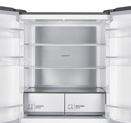 Dung tích danh định (L): 464 Ngăn đông (L): 175 Ngăn lạnh (gồm ngăn Selectable Zone) (L): 289 Ngăn chuyển đổi Selectable Zone (L): 18 Máy nén Inverter Mặt sau bằng kim loại Làm lạnh vòng cung Điều khiển cảm biến kép Đèn LED trong Ngăn đông và Ngăn lạnh