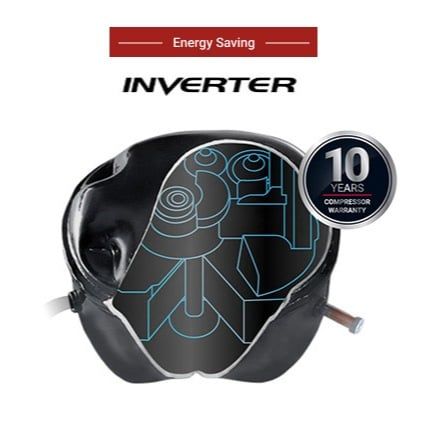 🔷 Inverter: sử dụng máy nén Inverter hiệu suất cao, điều khiển điện tử giúp tiết kiệm điện năng. Máy nén đảm bảo khả năng làm lạnh mạnh mẽ và giảm tiếng ồn khó chịu.